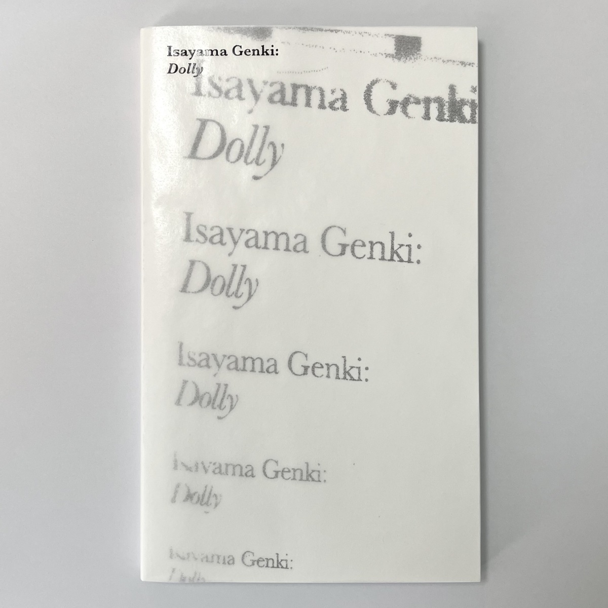 This is the exhibition catalogue for Dolly, a solo exhibition by Genki Isayama, held at Hakari Contemporary from October 31 to December 1, 2024.